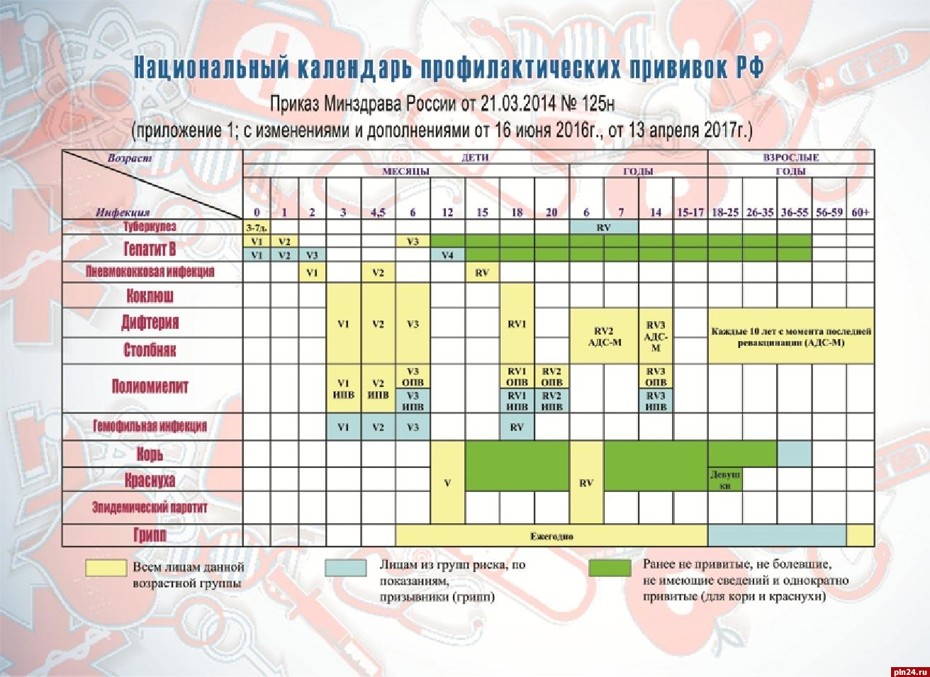 Действующая редакция Национального календаря профилактических прививок принята Приказом № 51н от 31.01.2011 Минздравсоцразвития РФ[1] и включает следующие прививки: